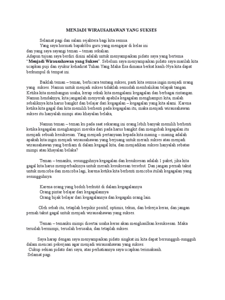 Contoh Pidato Bahasa Jawa Wirausaha : Contoh Pidato Wirausaha : Contoh pidato bahasa jawa tema kebersihan sekolah.. Apabila proses pembuangan sampah di indonesia tidak dibarengi dengan sistem pemusnahannya, suatu saat jawa barat yang dikenal paling padat. Contoh pidato bahasa jawa tentang acara ulang tahun. Saat admin memposting khutbah bahasa jawa kesehatan, banyak yang meminta untuk memposting pidato yang berbahasa jawa pula. Assalamualaikum wr.wb bapak kepala sekolah ingkang kula kurmati. Langsung saja ya sob, berikut contoh naskah pidato bahasa jawa krama :